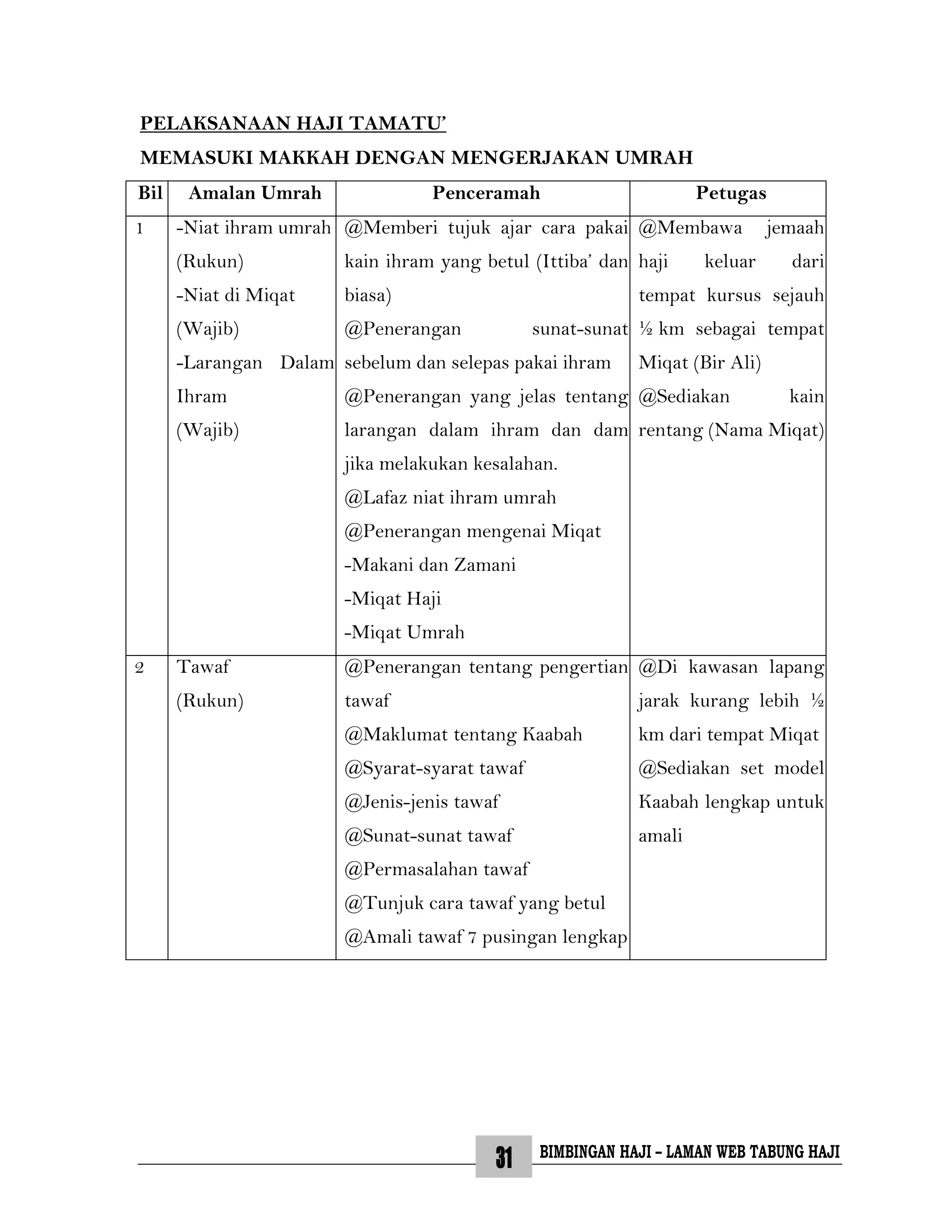 Guide to Hajj. Hajj Advisory Committee TH-JAKIM PEKTA. Kursus Umrah tidak ditawarkan di tabung haji hanya agensi pelancongan sahaja yang menawarkan kursus umrah secara percuma.